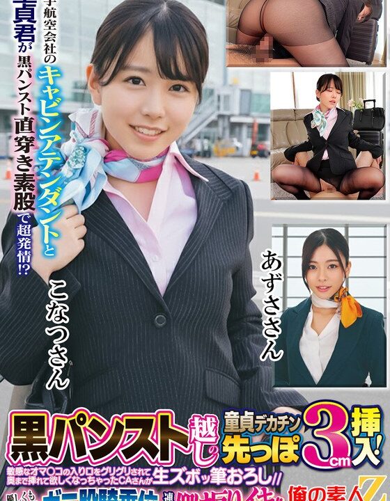 大手航空会社のキャビンアテンダントと童貞君が黒パンスト直穿き素股で超発情!?黒パンスト越しの童貞デカチン先っぽ3cm挿入!敏感なオマ○コの入り口をグリグリされて奥まで挿れて欲しくなっちゃったCAさんが生ズボッ筆おろし//優しくも腰振るガニ股騎乗位で連続仰け反り… 画像1